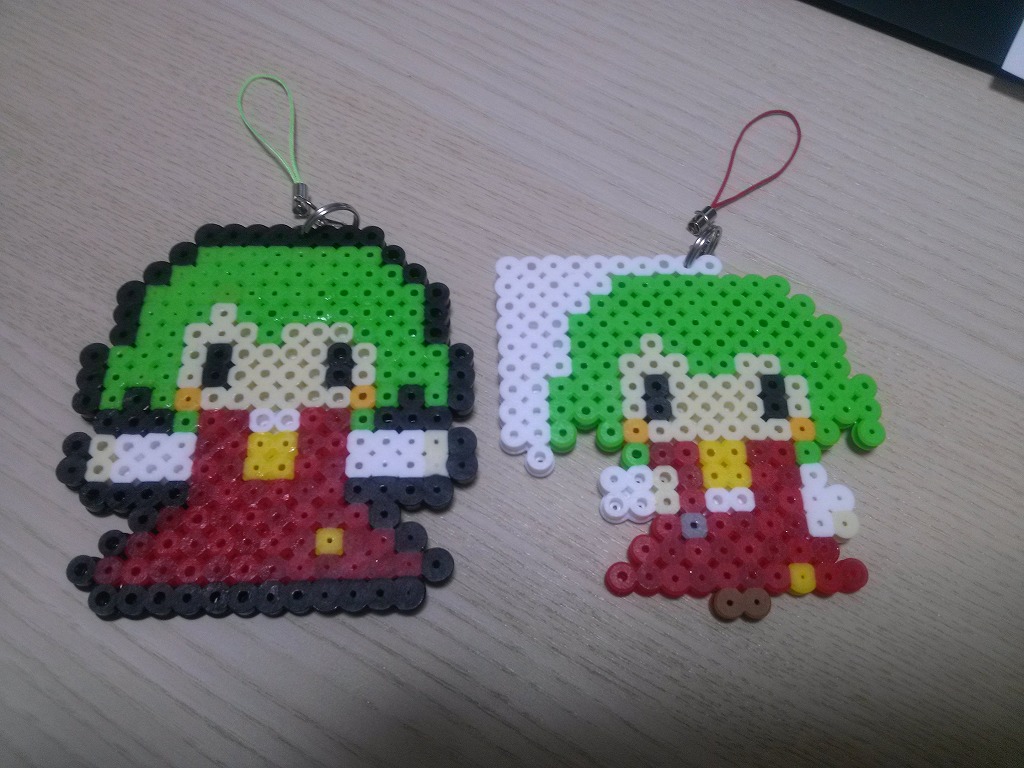 パーラービーズで作ったストラップを2種類用意しました。